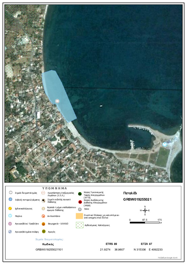 Αναφορικά με τη διαχείριση των αστικών λυμάτων του οικισμού Πεταλίδι που βρίσκεται ανάντη της ακτής και σε περίπτωση παρουσίας μη κατάλληλων ιδιωτικών συστημάτων αποχέτευσης (π.χ. απορροφητικών δεξαμενών). Είναι σκόπιμο να διερευνηθεί η εφαρμογή κατάλληλων ιδιωτικών συστημάτων ή συστημάτων επεξεργασίας μικρής κλίμακας τα οποία προσφέρουν προστασία του υπόγειου υδροφορέα και συνεπαγόμενα της θαλάσσιας περιοχής από εισροές ρυπαντικού φορτίου. Σχετικά με τη λειτουργία της μαρίνας του Πεταλιδίου συνιστάται η ορθή περιβαλλοντική διαχείριση των αποβλήτων των σκαφών σύμφωνα με την ισχύουσα νομοθεσία.
